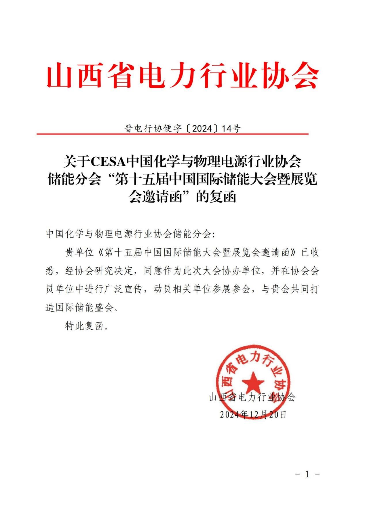 中國(guó)儲(chǔ)能網(wǎng)訊:近日,山西省電力行業(yè)協(xié)會(huì)復(fù)函中國(guó)化學(xué)與物理電源行業(yè)協(xié)會(huì)儲(chǔ)能應(yīng)用分會(huì),同意作為第十五屆中國(guó)國(guó)際儲(chǔ)能大會(huì)暨展覽會(huì)(CIES2025)協(xié)辦單位,并在協(xié)會(huì)會(huì)員單位中進(jìn)行廣泛宣傳,動(dòng)員相關(guān)單位參展參會(huì),與中國(guó)化學(xué)與物理電源行業(yè)協(xié)會(huì)儲(chǔ)能應(yīng)用分會(huì)共同打造這場(chǎng)國(guó)際儲(chǔ)能盛會(huì)。