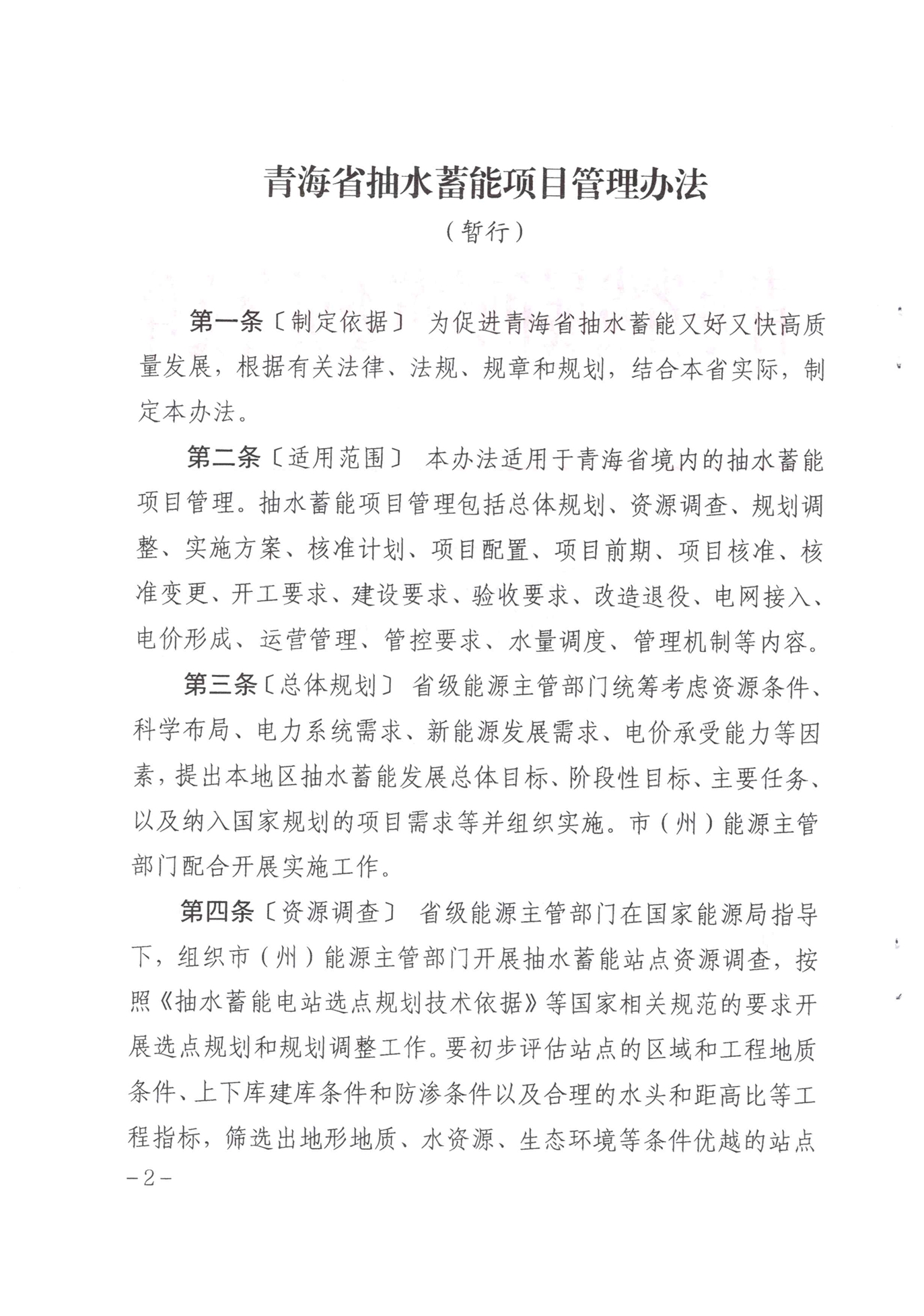 青海省抽水蓄能管理辦法(暫行)