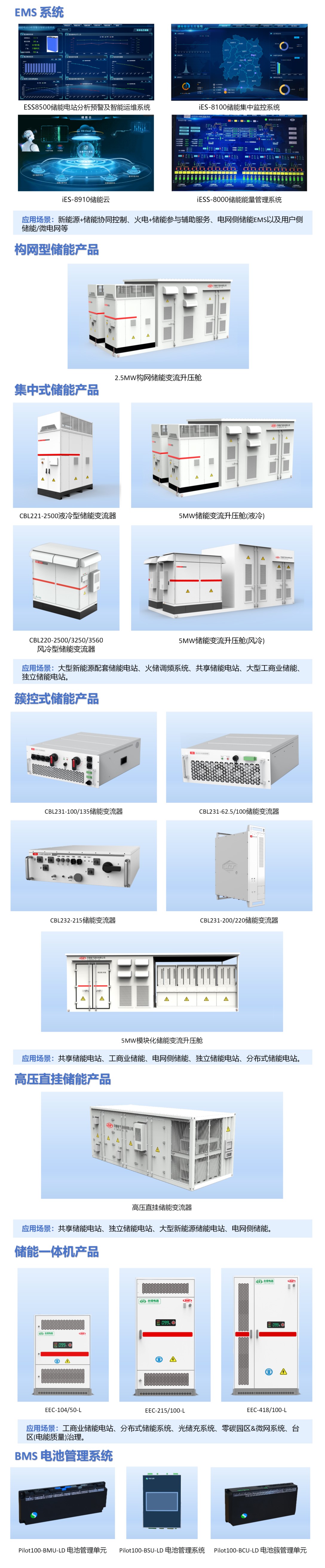 在關(guān)鍵設(shè)備中,自主研制的儲能變流器產(chǎn)品從50kW~6900kW各個功率等級,產(chǎn)品技術(shù)有1000V~1500V電壓等級,包括集中式、簇控式和集散式多種技術(shù)路線的PCS產(chǎn)品,以及可以通過10kV和35kV直接并網(wǎng)的高壓直掛儲能產(chǎn)品,能給用戶提供更多技術(shù)和產(chǎn)品選擇,是國內(nèi)技術(shù)路線最全的儲能變流器供應(yīng)商之一。同時擁有完備的電力量測產(chǎn)品體系,業(yè)務(wù)涵蓋電能量測、量值溯源、低壓電氣、數(shù)字能源四大領(lǐng)域。其中數(shù)字能源領(lǐng)域,基于 BMS 電池管理系統(tǒng)和小功率 3S 融合裝置,精心打造了一系列分布式儲能核心產(chǎn)品。