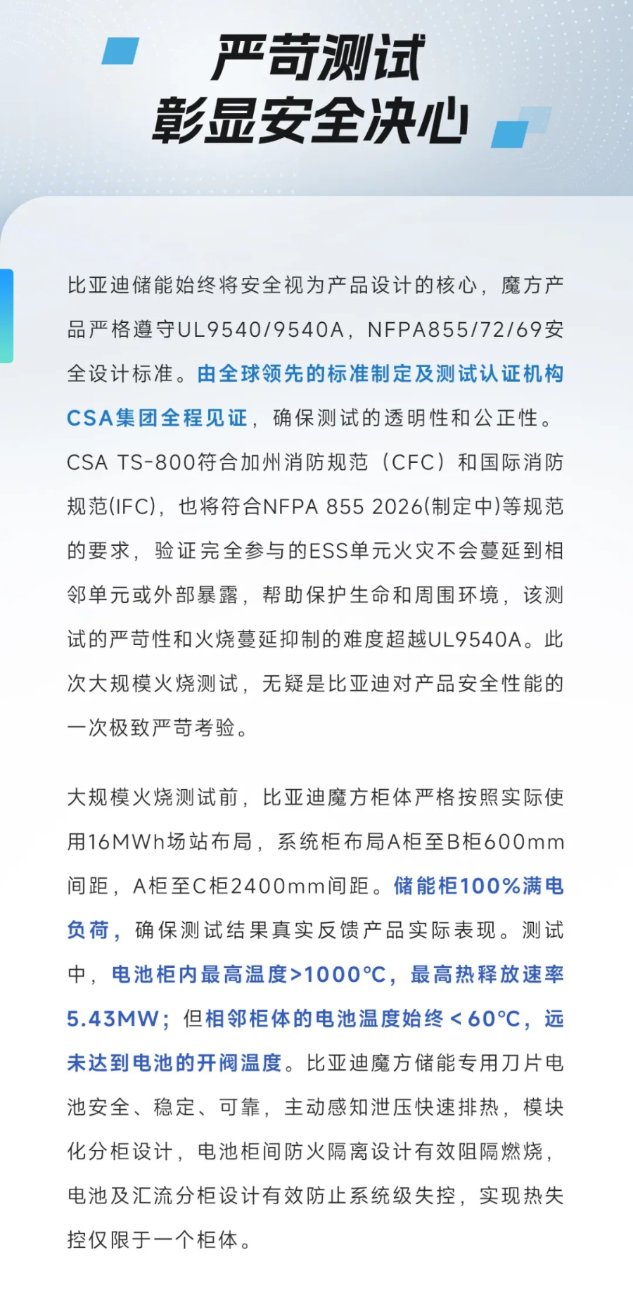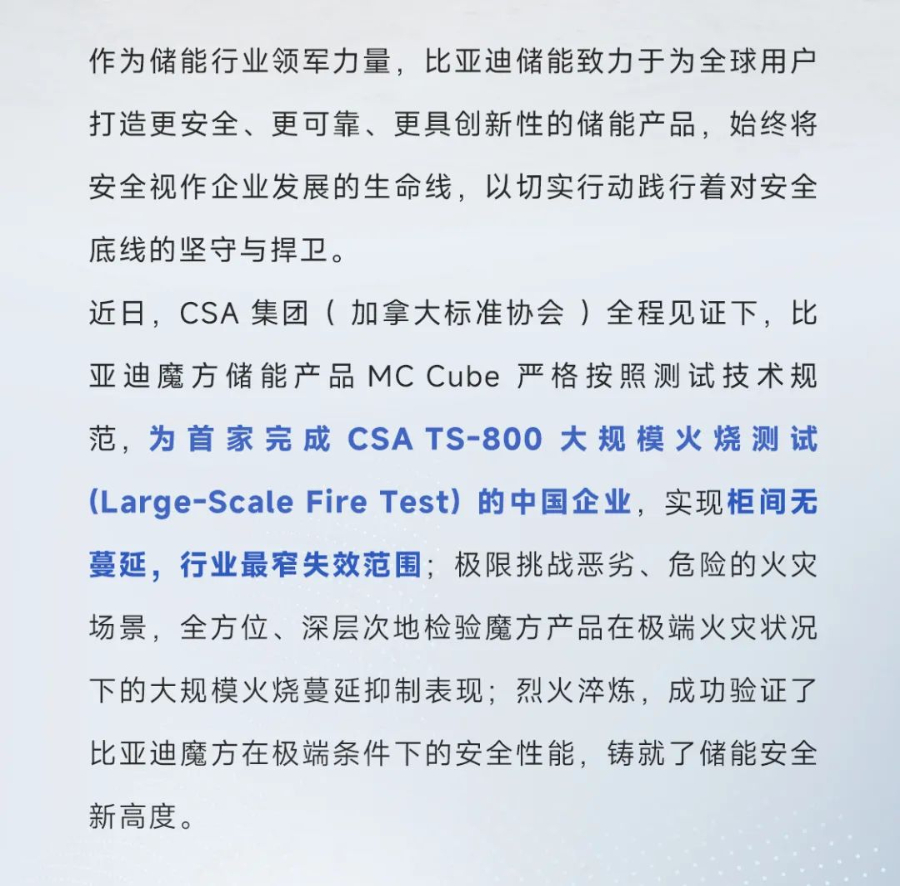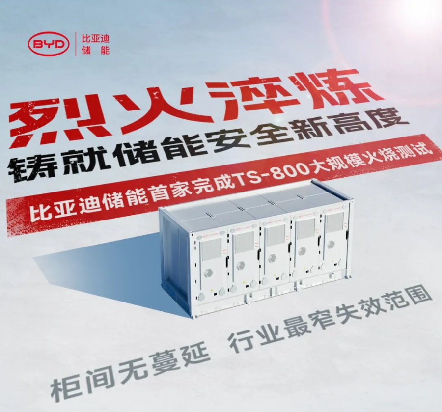 比亞迪儲(chǔ)能首家完成TS-800大規(guī)模火燒測(cè)試 鑄就儲(chǔ)能安全新高度