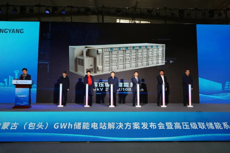 隨著儲能電站從MWh時代邁向GWh時代,明陽集團(tuán)此次推出的35kV高壓級聯(lián)儲能系統(tǒng)憑借其領(lǐng)先的技術(shù)優(yōu)勢,成為GWh儲能電站的最優(yōu)解決方案之一。該系統(tǒng)具備單機(jī)容量大、能量轉(zhuǎn)換效率高、系統(tǒng)協(xié)調(diào)控制簡單、安全性高、造價低、電池壽命長以及電網(wǎng)支撐能力強(qiáng)等多重優(yōu)點。此次下線的產(chǎn)品要針對“三北地區(qū)”以及“沙戈荒”大基地新型應(yīng)用場景進(jìn)行研發(fā),能為電網(wǎng)提供更強(qiáng)的調(diào)峰調(diào)頻能力,更好地支撐新能源發(fā)電的接入和電網(wǎng)的穩(wěn)定運行。