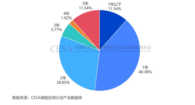 圖1 2024年儲能容量租賃不同年限項目數(shù)占比