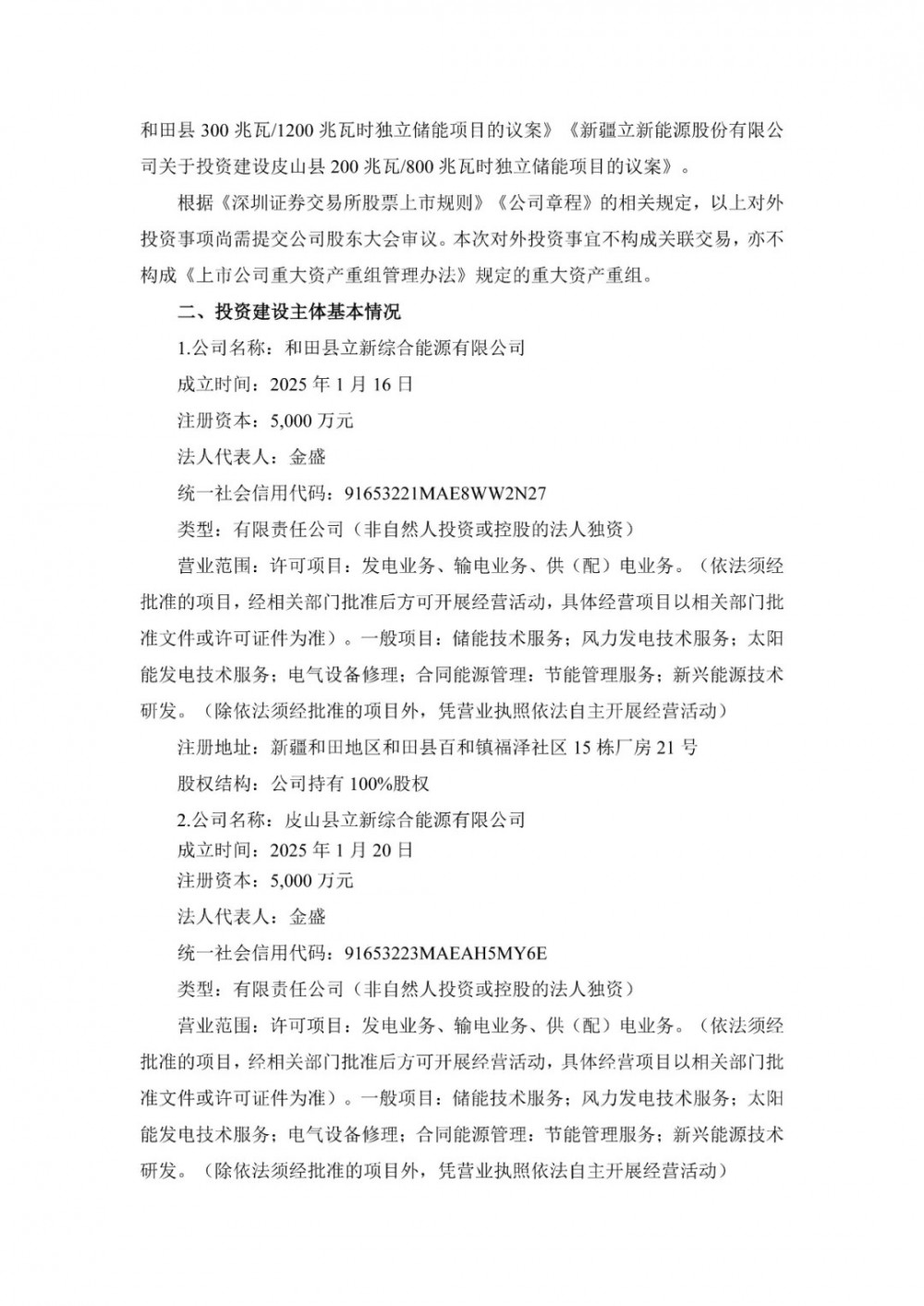 和田縣300兆瓦/1200兆瓦時獨立儲能項目投資總額約10.6億元;皮山縣200兆瓦/800兆瓦時獨立儲能項目投資總額約7.16億元。項目建設工期均為12個月,資金來源為公司自有資金和銀行貸款。