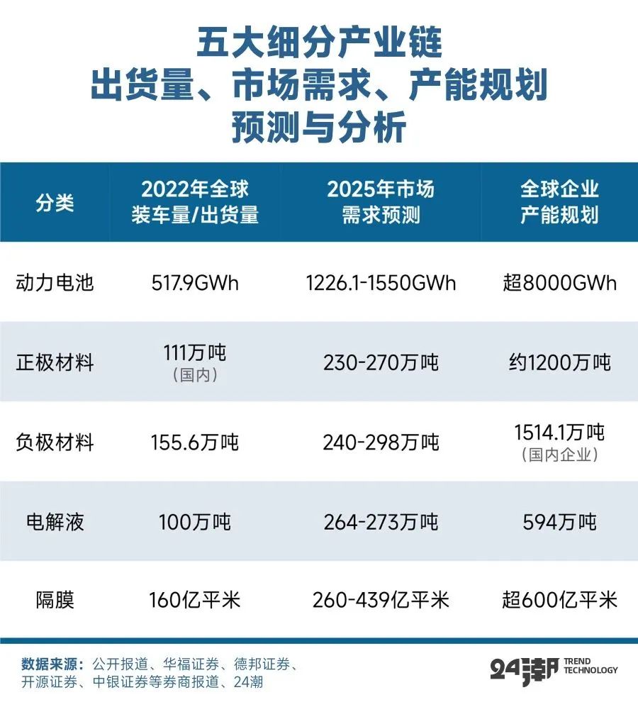 (注:圖表中 “動力電池” 一欄涵蓋儲能電池產(chǎn)能)