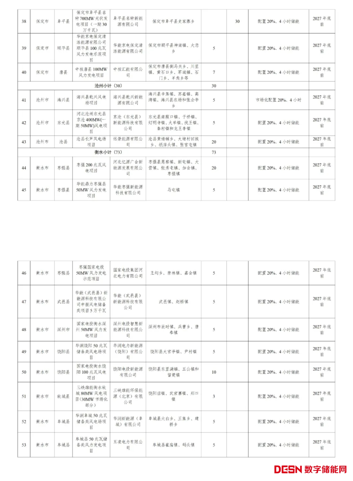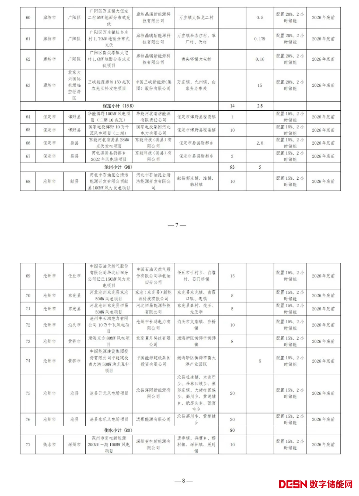 此前,7月3日,河北省發(fā)改委發(fā)布《河北省2024年風(fēng)電、光伏發(fā)電開發(fā)建設(shè)方案擬安排項目情況公示》。公示項目共189個、1784.263萬千瓦,其中保障性項目共116個、1039.298萬千瓦,市場化項目共73個、744.965萬千瓦??偱鋬σ?guī)模約3.22GW/9.33GWh