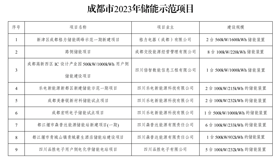 為加快推動成都市儲能產(chǎn)業(yè)發(fā)展,著力構(gòu)建清潔低碳安全高效的現(xiàn)代能源體系,前期市發(fā)改委印發(fā)了《關(guān)于申報2023年污染治理和節(jié)能減碳領(lǐng)域(儲能專項)市預(yù)算內(nèi)投資項目的通知》(成發(fā)改環(huán)資函〔2023〕92號),對年利用小時數(shù)不低于600小時的儲能示范設(shè)施給予每千瓦230元/年補助,補貼周期為連續(xù)3年,每年最高不超過100萬。經(jīng)企業(yè)自愿申報和專家評審,共有9個儲能項目被納入成都市2023年儲能示范項目(見附件),現(xiàn)予以公示。