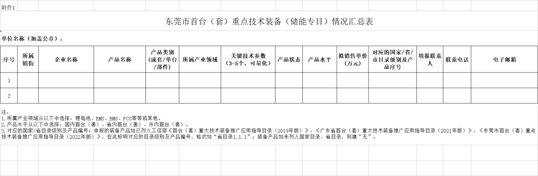 附件:1.東莞市首臺(套)重點(diǎn)技術(shù)裝備(儲能專目)情況匯總表