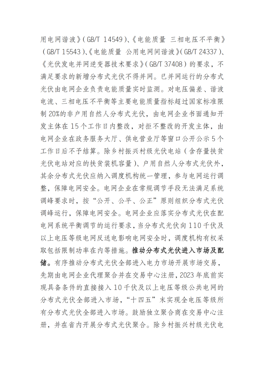 明確推動(dòng)分布式光伏進(jìn)入市場(chǎng)及配儲(chǔ)。有序推動(dòng)分布式光伏全部進(jìn)入電力市場(chǎng)開(kāi)展市場(chǎng)交易,先期由電網(wǎng)企業(yè)代理聚合并在交易中心注冊(cè),2023年底前實(shí)現(xiàn)具備條件的直接接入10千伏及以上電壓等級(jí)公共電網(wǎng)的分布式光伏全部進(jìn)入市場(chǎng),“十四五”末實(shí)現(xiàn)全電壓等級(jí)所有分布式光伏全部進(jìn)入市場(chǎng)。