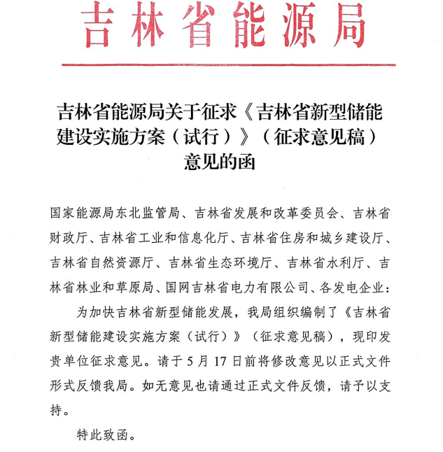 中國儲(chǔ)能網(wǎng)訊:近期,吉林省能源局制定了《吉林省新型儲(chǔ)能建設(shè)實(shí)施方案(試行)》(征求意見稿),提出新型儲(chǔ)能建設(shè)目標(biāo),到“十四五”末全省新型儲(chǔ)能規(guī)模達(dá)到500MW。首批集中式儲(chǔ)能示范項(xiàng)目規(guī)模約200MW/600MWh,其中鉛炭電池儲(chǔ)能、全釩液流電池儲(chǔ)能各100MW。