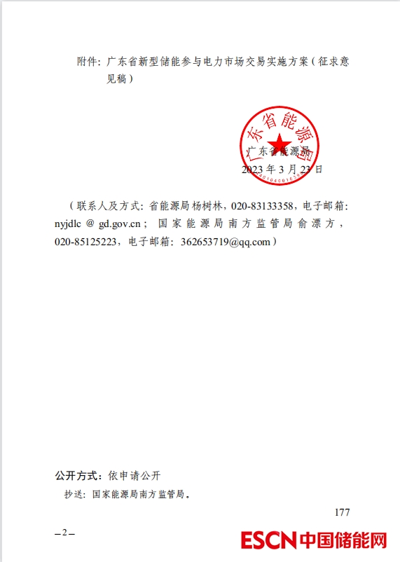 中國儲能網(wǎng)訊:近日,廣東省能源局發(fā)布了《關(guān)于征求廣東省新型儲能參與電力市場交易實施方案(征求意見稿)意見的函》,隨函發(fā)布了《廣東省新型儲能參與電力市場交易實施方案(征求意見稿)》(以下簡稱《方案》)。
