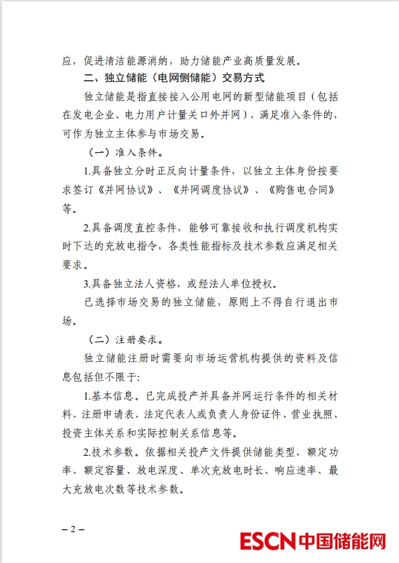 方案規(guī)定,獨立儲能可作為獨立主體參與電力市場交易。獨立儲能指滿足接入條件的、接入公共電網(wǎng)的新型儲能項目(包括在發(fā)電企業(yè)、電力用戶計量關(guān)口外并網(wǎng))。