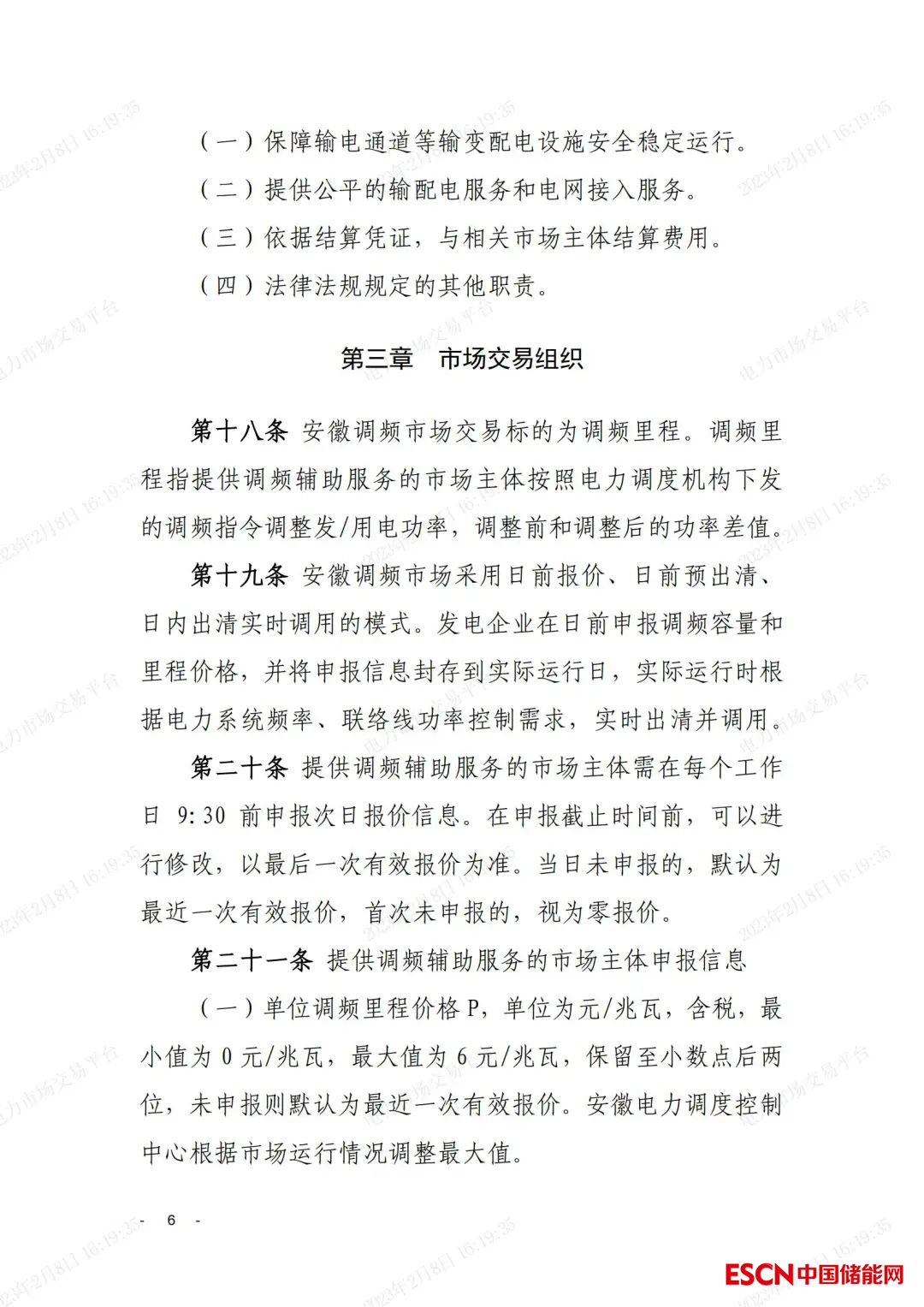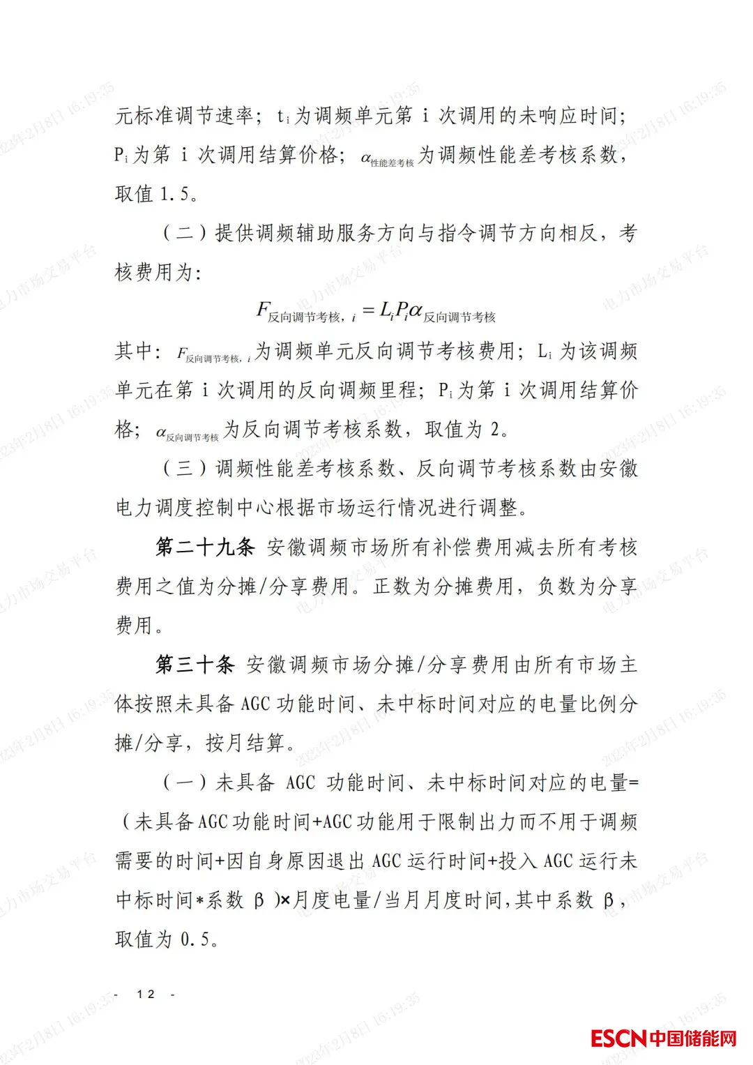 單位調(diào)頻里程價(jià)格P,最小值為0元/兆瓦,最大值為6元/兆瓦,未申報(bào)則默認(rèn)為最近一次有效報(bào)價(jià)。安徽電力調(diào)度控制中心根據(jù)市場(chǎng)運(yùn)行情況調(diào)整最大值。