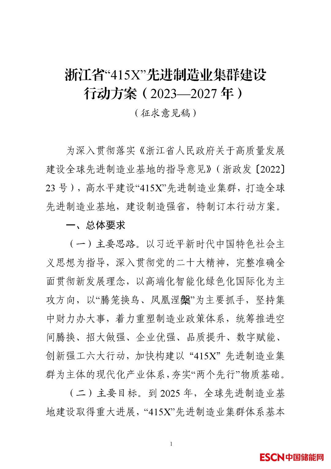 《浙江省“415X”先進(jìn)制造業(yè)集群建設(shè)行動(dòng)方案(2023-2027年)(征求意見稿)》原文如下: