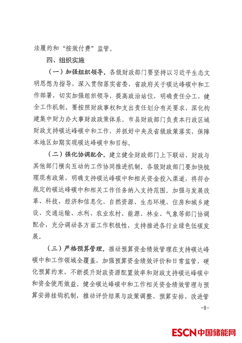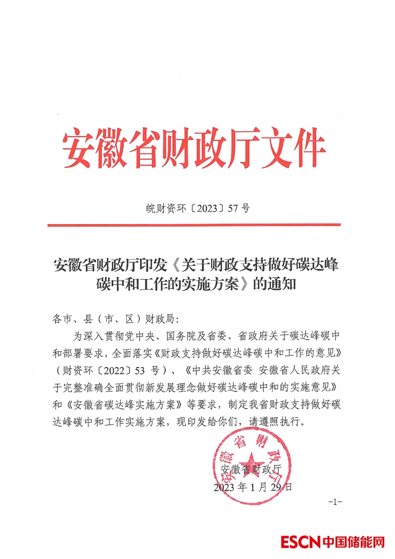中國儲(chǔ)能網(wǎng)訊:近日,安徽省財(cái)政廳印發(fā)《關(guān)于財(cái)政支持碳達(dá)峰碳中和工作的實(shí)施方案》?!秾?shí)施方案》指出,在重點(diǎn)支持方向上,將聚焦能源清潔低碳高效利用、重點(diǎn)行業(yè)領(lǐng)域綠色低碳轉(zhuǎn)型、綠色低碳科技創(chuàng)新體系建設(shè)、綠色低碳生活和資源節(jié)約利用、碳匯能力鞏固提升、健全綠色低碳市場(chǎng)體系等六個(gè)方面。