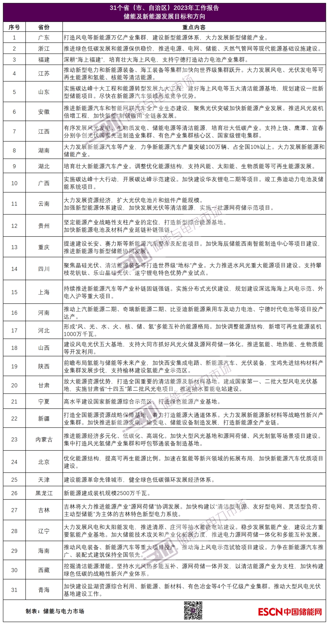 儲能與電力市場特別從政府工作報告中梳理出31省市2023年新能源及儲能發(fā)展的目標(biāo)和方向,為行業(yè)發(fā)展提供系統(tǒng)參考。
