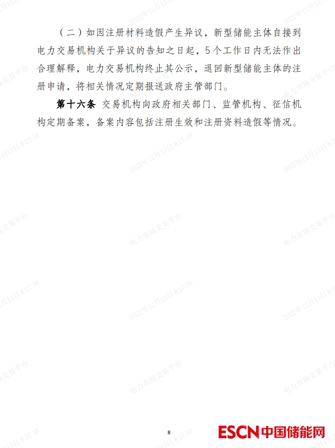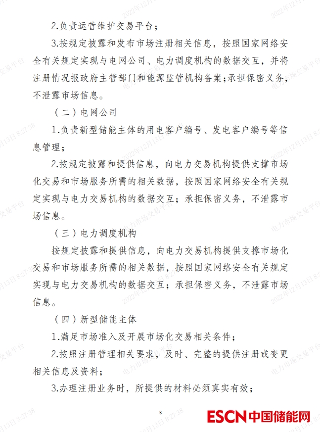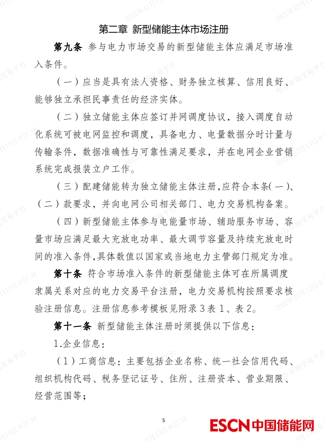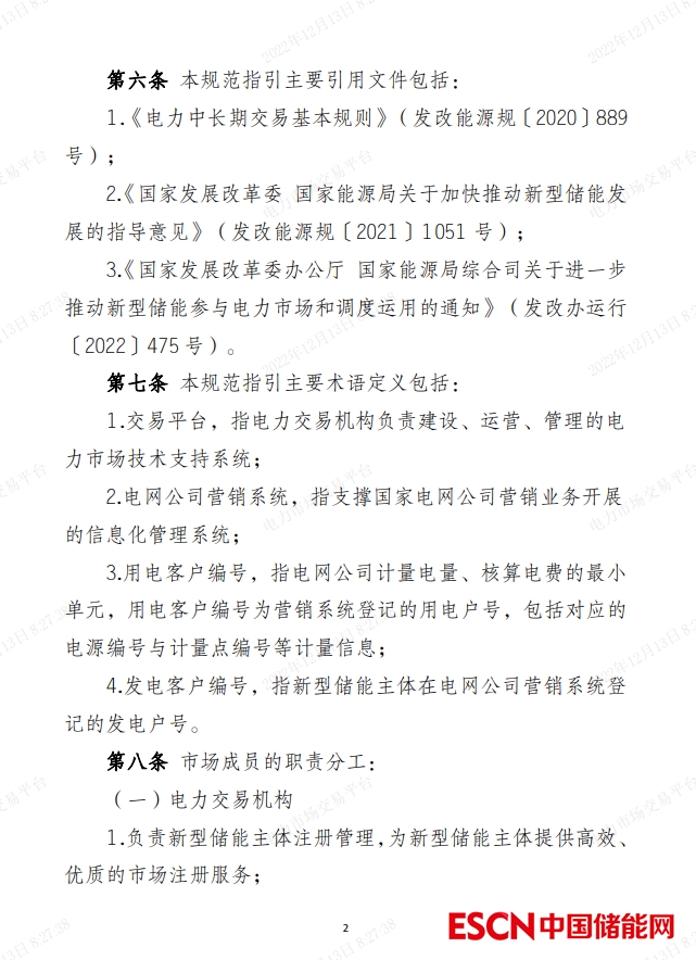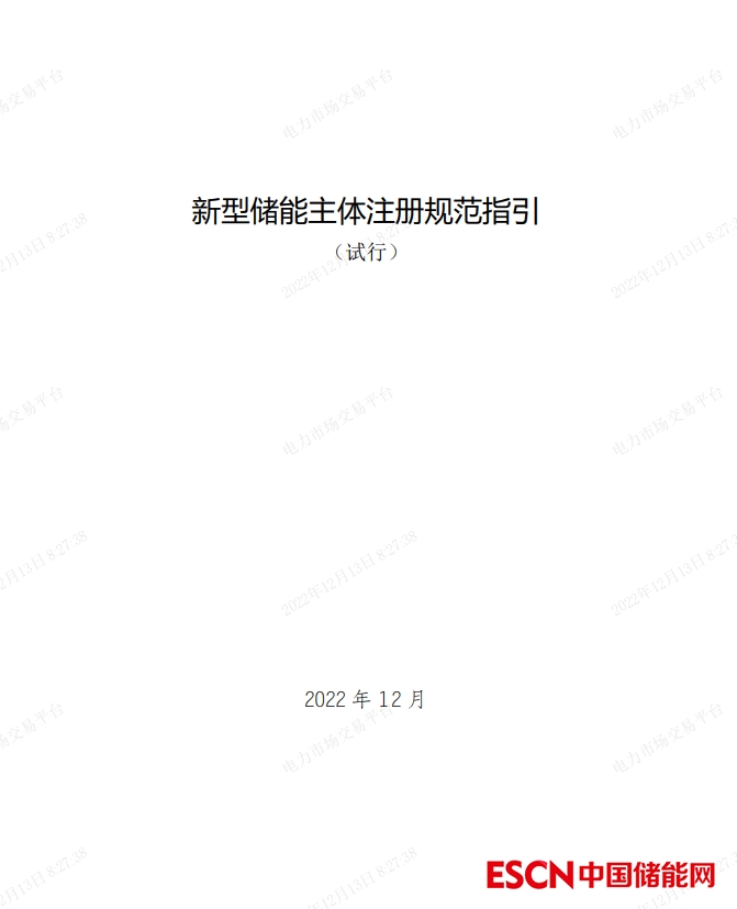 中國儲能網(wǎng)訊:12月12日,北京電力交易中心有限公司與各省電力交易中心有限公司聯(lián)合編制的《新型儲能主體注冊規(guī)范指引(試行)》印發(fā)。