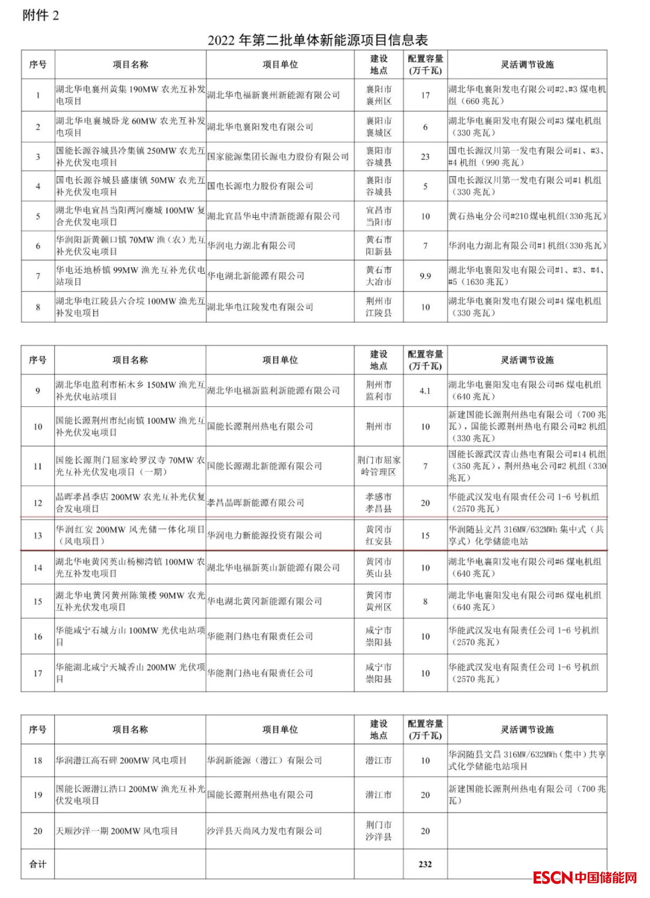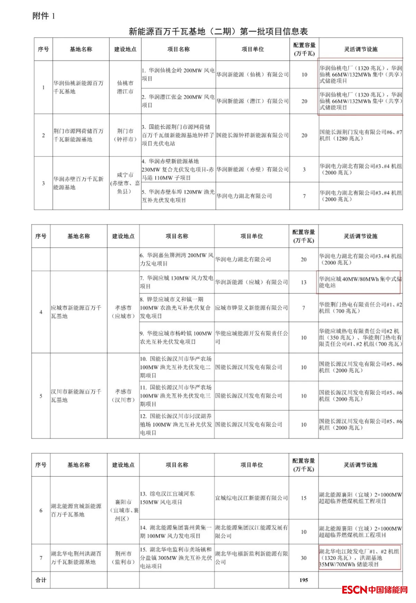 一、包括7個風光火儲新能源百萬千瓦基地(二期)項目共計15個,容量195萬千瓦,其中:風電項目6個、容量88萬千瓦;光伏發(fā)電項目9個、容量107萬千瓦。涉及靈活調節(jié)配儲包含:華潤仙桃66MW/132MWh集中(共享)式儲能項目,華潤應城40MW/80MWh集中式儲能電站和華電洪湖基地35MW/70MWh儲能項目。