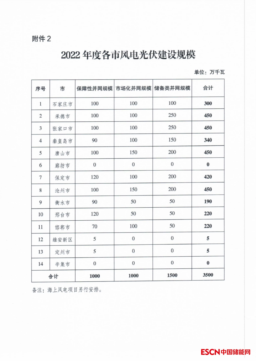 中國儲(chǔ)能網(wǎng)訊:11月4日,河北省發(fā)改委正式下發(fā)《關(guān)于做好2022年風(fēng)電、光伏發(fā)電項(xiàng)目申報(bào)工作的通知》,各市風(fēng)光規(guī)??傆?jì)35GW,相比此前河北省發(fā)改委下發(fā)的《關(guān)于做好2022年風(fēng)電、光伏發(fā)電開發(fā)建設(shè)有關(guān)事項(xiàng)的通知》來看,保障性項(xiàng)目增加5GW到10GW,市場(chǎng)化以及儲(chǔ)備項(xiàng)目仍分別為10GW、15GW。