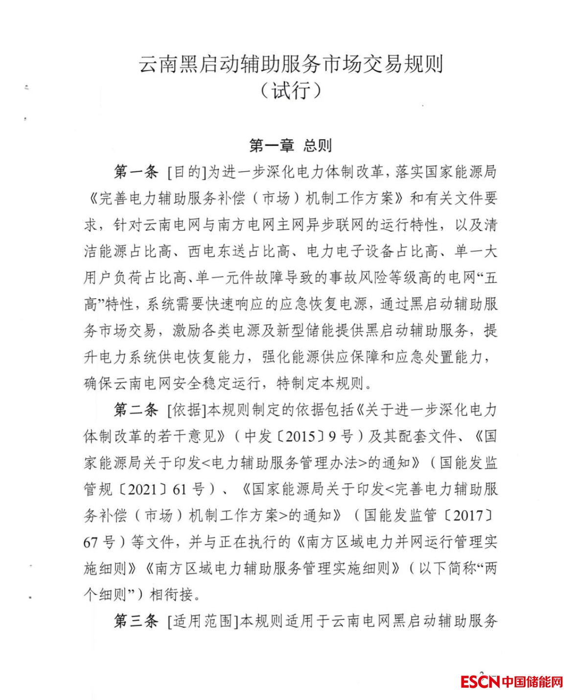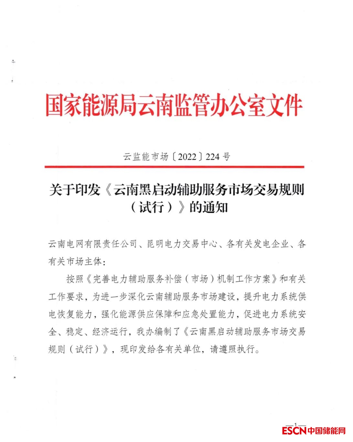 中國儲能網(wǎng)訊:10月19日,云南省能監(jiān)辦發(fā)布了《云南黑啟動輔助服務(wù)市場交易規(guī)則(試行)》(以下簡稱《交易規(guī)則》),并自印發(fā)之日起執(zhí)行此規(guī)則。