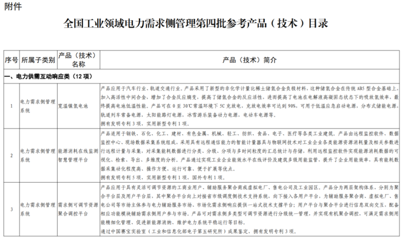 全國工業(yè)領(lǐng)域電力需求側(cè)管理第四批參考產(chǎn)品(技術(shù))目錄