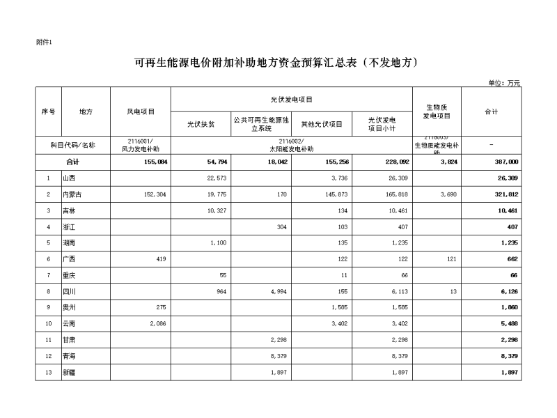 1.可再生能源電價(jià)附加補(bǔ)助地方資金預(yù)算匯總表(不發(fā)地方)