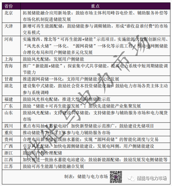 各省份“十四五”時(shí)期儲能發(fā)展重點(diǎn)