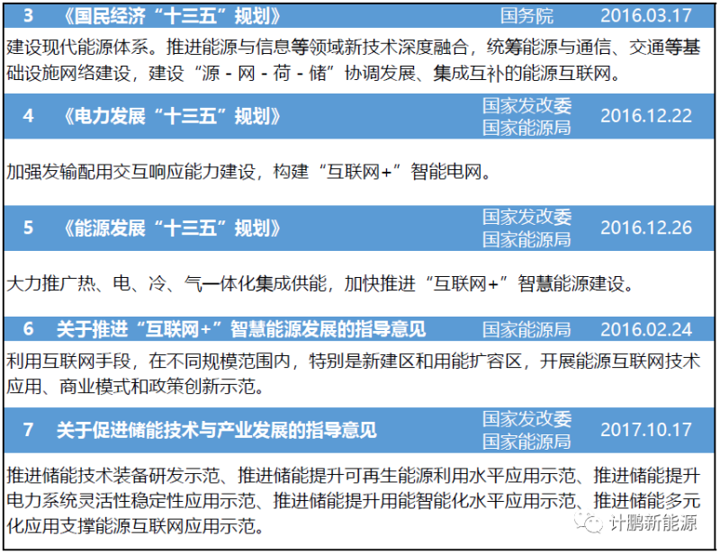 《十三五規(guī)劃》明確提出 “源網(wǎng)荷儲(chǔ)”相協(xié)調(diào)的系統(tǒng)化發(fā)展思路;《電力》、《能源》兩個(gè)專項(xiàng)規(guī)劃強(qiáng)化了“互聯(lián)網(wǎng)+”智慧能源建設(shè);《儲(chǔ)能產(chǎn)業(yè)發(fā)展指導(dǎo)意見》,明確儲(chǔ)能在電力系統(tǒng)中的重要地位