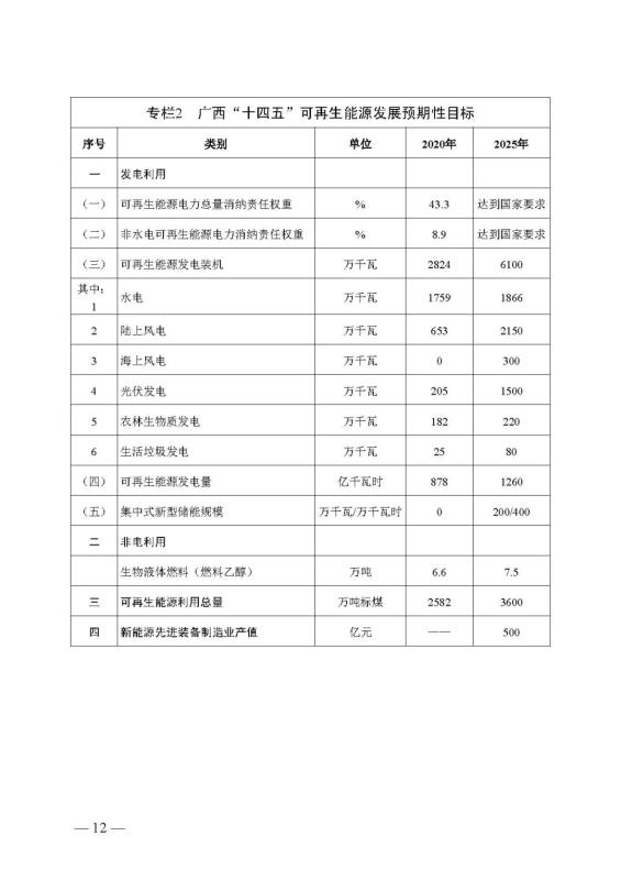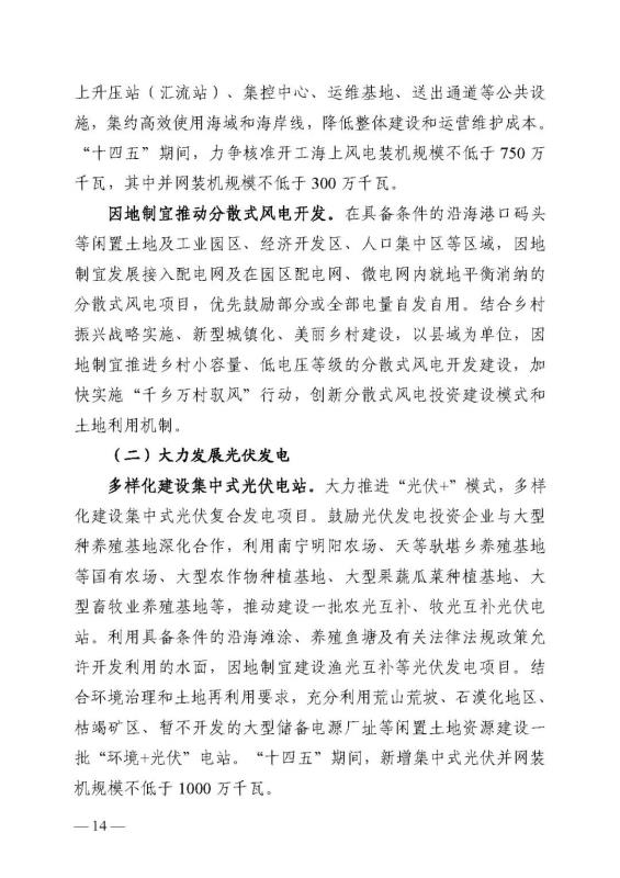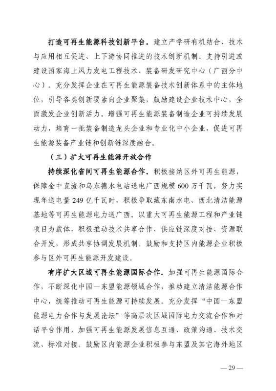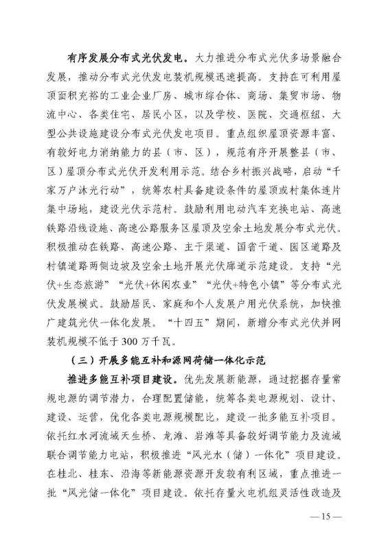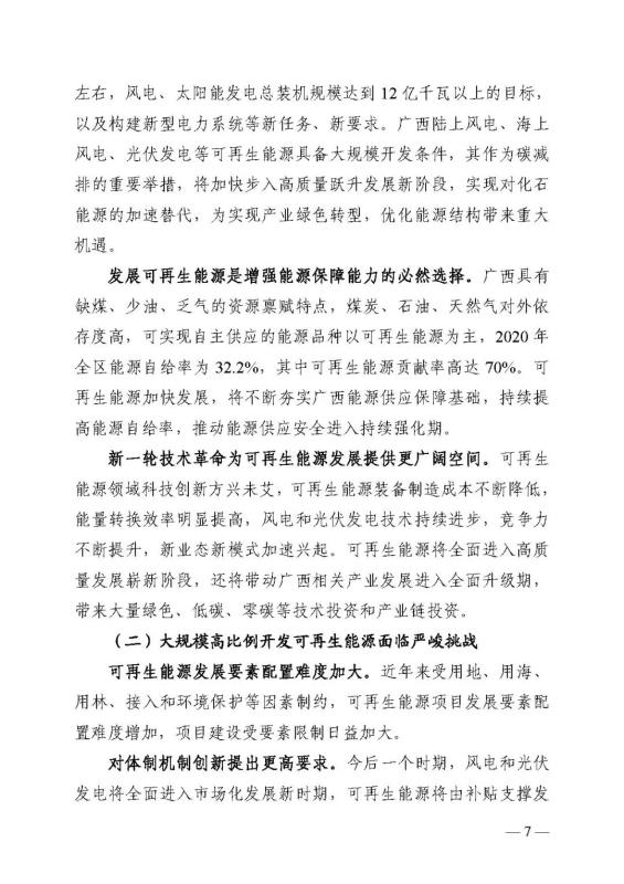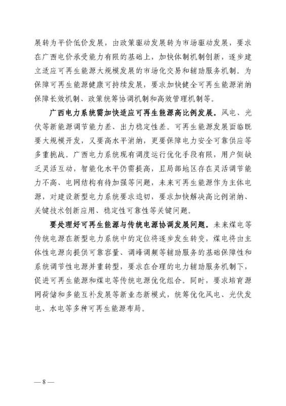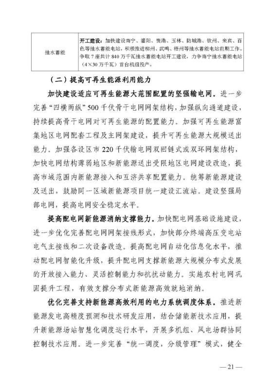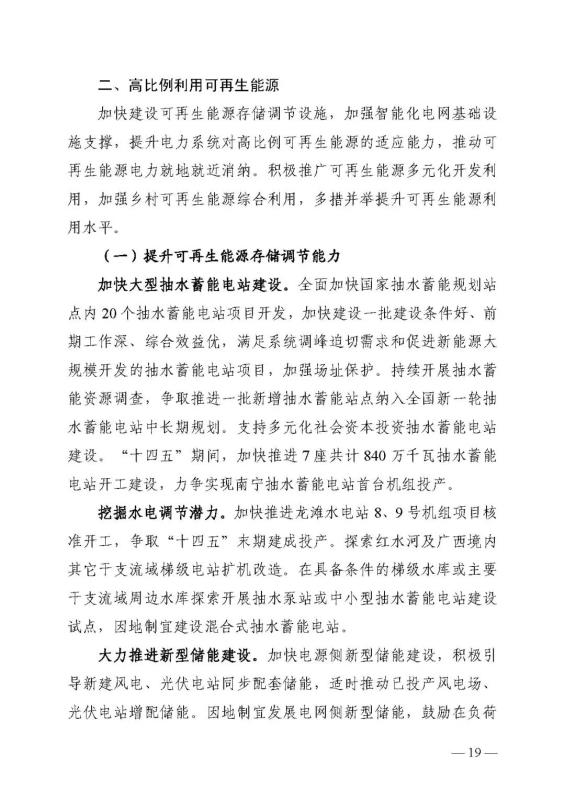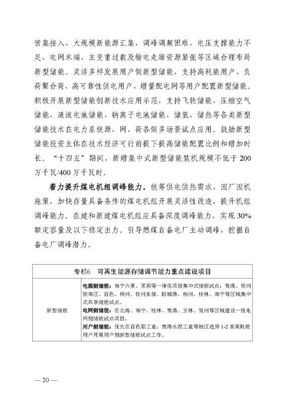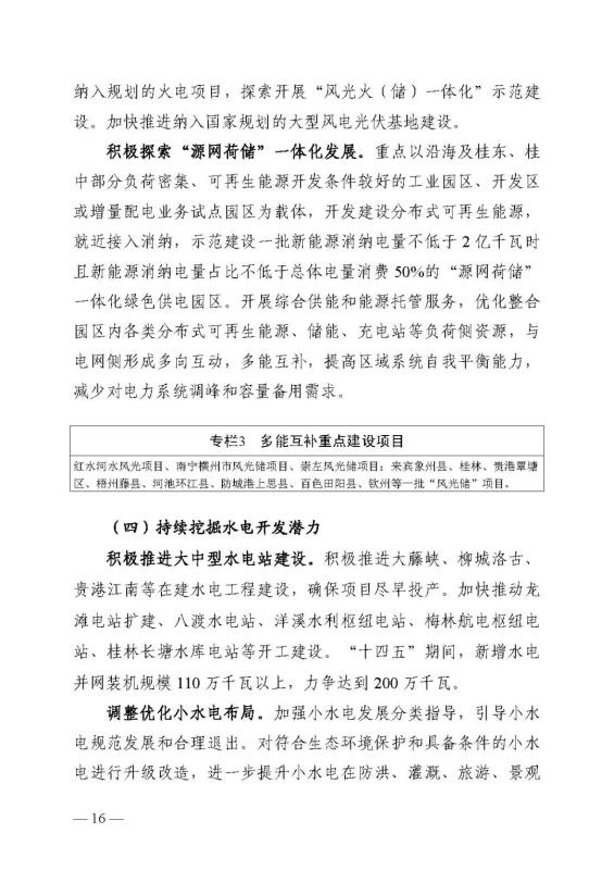 十四五期間在桂北、桂東、沿海等新能源資源開發(fā)較有利區(qū)域,重點(diǎn)推進(jìn)一批“風(fēng)光儲一體化”項(xiàng)目建設(shè)。依托存量火電機(jī)組靈活性改造及納入規(guī)劃的火電項(xiàng)目,探索開展“風(fēng)光火(儲)一體化”示范建設(shè)。加快推進(jìn)納入國家規(guī)劃的大型風(fēng)電光伏基地建設(shè)。