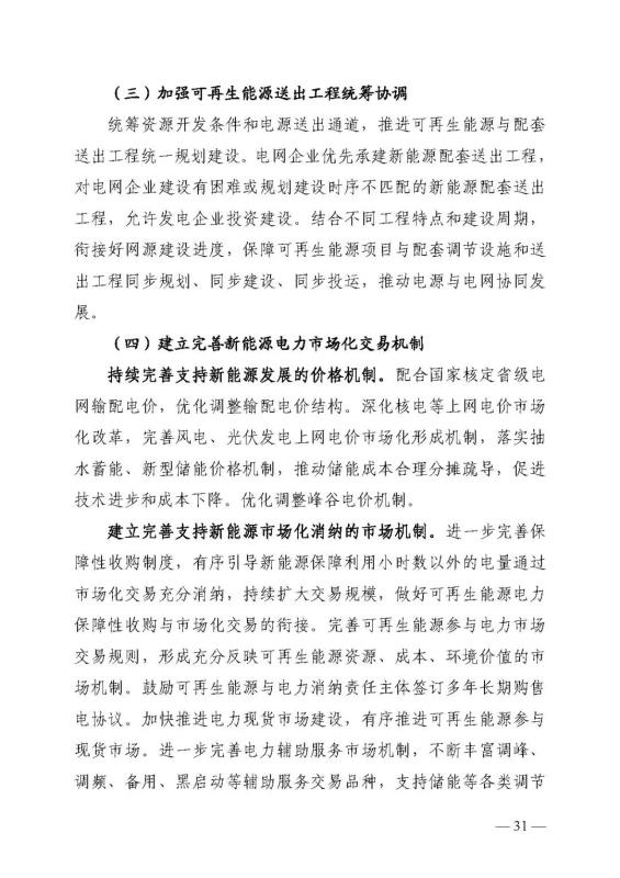 規(guī)劃到2025年,集中式新型儲能并網(wǎng)裝機(jī)規(guī)模達(dá)到200萬千瓦/400萬千瓦時,水電1866萬千瓦、陸上風(fēng)電2150萬千瓦、海上風(fēng)電300萬千瓦、光伏發(fā)電1500萬千瓦、農(nóng)林生物質(zhì)發(fā)電220萬千瓦、生活垃圾發(fā)電80萬千瓦。到2025年,可再生能源并網(wǎng)裝機(jī)規(guī)模達(dá)到6100萬千瓦,可再生能源發(fā)電量達(dá)到1260億千瓦時。