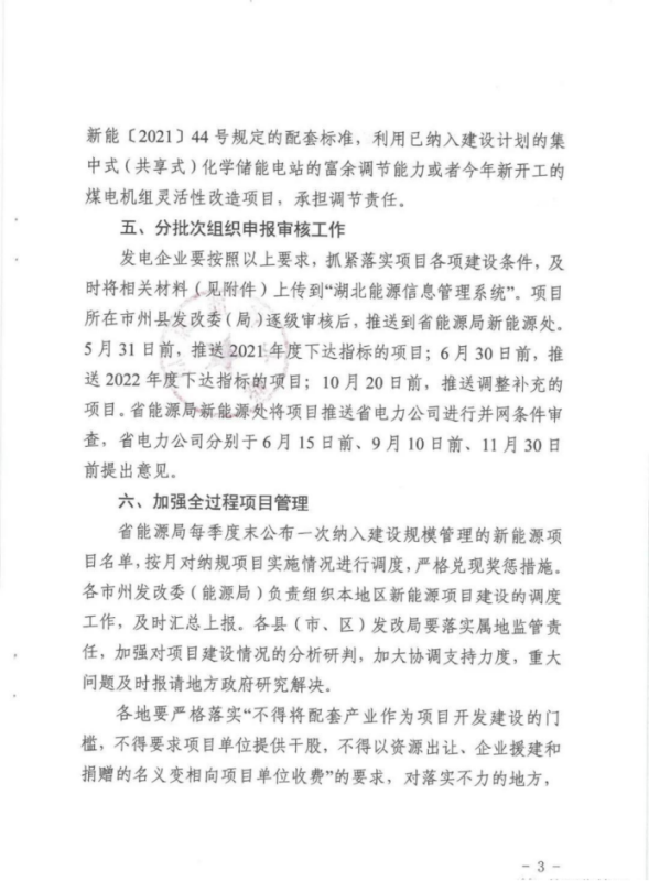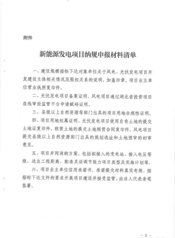 時(shí)間安排上,發(fā)電企業(yè)抓緊落實(shí)項(xiàng)目各項(xiàng)建設(shè)條件,及時(shí)將相關(guān)材料(見附件)上傳到“湖北能源信息管理系統(tǒng)”。項(xiàng)目所在市州縣發(fā)改委(局)逐級(jí)審核后,推送到省能源局新能源處。5月31日前,推送2021年度下達(dá)指標(biāo)的項(xiàng)目;6月30日前推送2022年度下達(dá)指標(biāo)的項(xiàng)目;10月20日前,推送調(diào)整補(bǔ)充的項(xiàng)目。