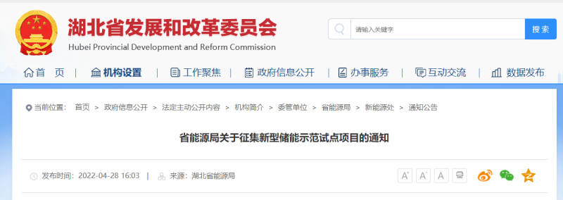 中國儲(chǔ)能網(wǎng)訊:4月28日,湖北省能源局發(fā)布征集新型儲(chǔ)能示范試點(diǎn)項(xiàng)目的通知。