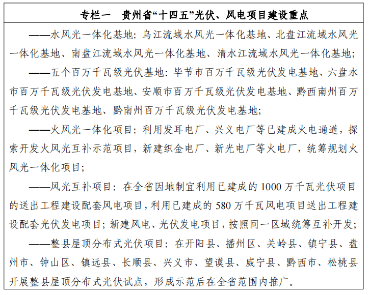 此外,貴州省對于光伏和風(fēng)電等項(xiàng)目的投資進(jìn)行了匡算?!笆奈濉逼陂g,全省新能源與可再生能源項(xiàng)目投資約1234億元,其中: