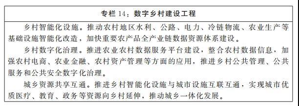 2.數(shù)字鄉(xiāng)村。實(shí)施新一代農(nóng)業(yè)農(nóng)村信息基礎(chǔ)設(shè)施建設(shè)工程,加快寬帶通信網(wǎng)、移動(dòng)互聯(lián)網(wǎng)、數(shù)字電視網(wǎng)和下一代互聯(lián)網(wǎng)向農(nóng)村延伸覆蓋,大幅提升鄉(xiāng)村網(wǎng)絡(luò)設(shè)施水平。實(shí)施信息進(jìn)村入戶整省推進(jìn)示范提升工程,推動(dòng)農(nóng)業(yè)農(nóng)村信息化服務(wù)平臺(tái)和應(yīng)用系統(tǒng)整合,創(chuàng)建60個(gè)以上省級(jí)數(shù)字鄉(xiāng)村示范縣,培育20家以上數(shù)字鄉(xiāng)村建設(shè)領(lǐng)軍企業(yè),建設(shè)一批省級(jí)數(shù)字鄉(xiāng)村創(chuàng)新中心。完善農(nóng)村基層黨建信息平臺(tái),推進(jìn)鄉(xiāng)村治理能力現(xiàn)代化。繁榮發(fā)展鄉(xiāng)村網(wǎng)絡(luò)文化,開(kāi)展全民數(shù)字技能教育和培訓(xùn),推進(jìn)農(nóng)村公共文化產(chǎn)品和服務(wù)數(shù)字化,縮小城鄉(xiāng)數(shù)字鴻溝。