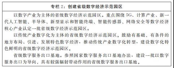 2.創(chuàng)建省級(jí)數(shù)字經(jīng)濟(jì)示范園區(qū)。堅(jiān)持分類(lèi)分行業(yè),以服務(wù)為著力點(diǎn),認(rèn)定一批省級(jí)數(shù)字化服務(wù)企業(yè)和數(shù)字經(jīng)濟(jì)示范園區(qū)。積極擴(kuò)大數(shù)字服務(wù)出口,加快服務(wù)出口數(shù)字化轉(zhuǎn)型,認(rèn)定一批省級(jí)數(shù)字服務(wù)出口基地,申建國(guó)家數(shù)字服務(wù)出口基地。