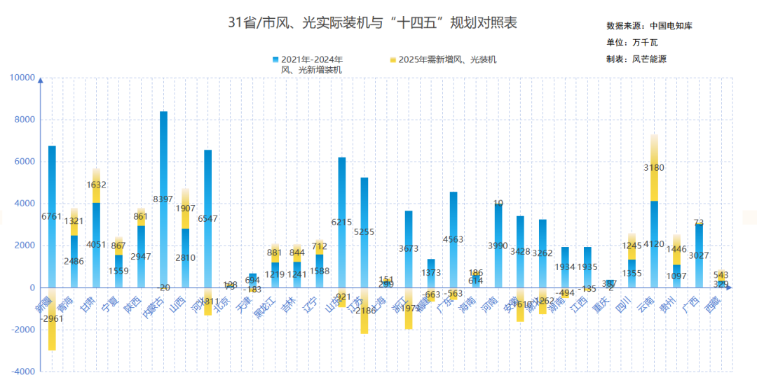 分領(lǐng)域來看,各省風(fēng)電、光伏推進節(jié)奏及規(guī)劃達成進度差異明顯。