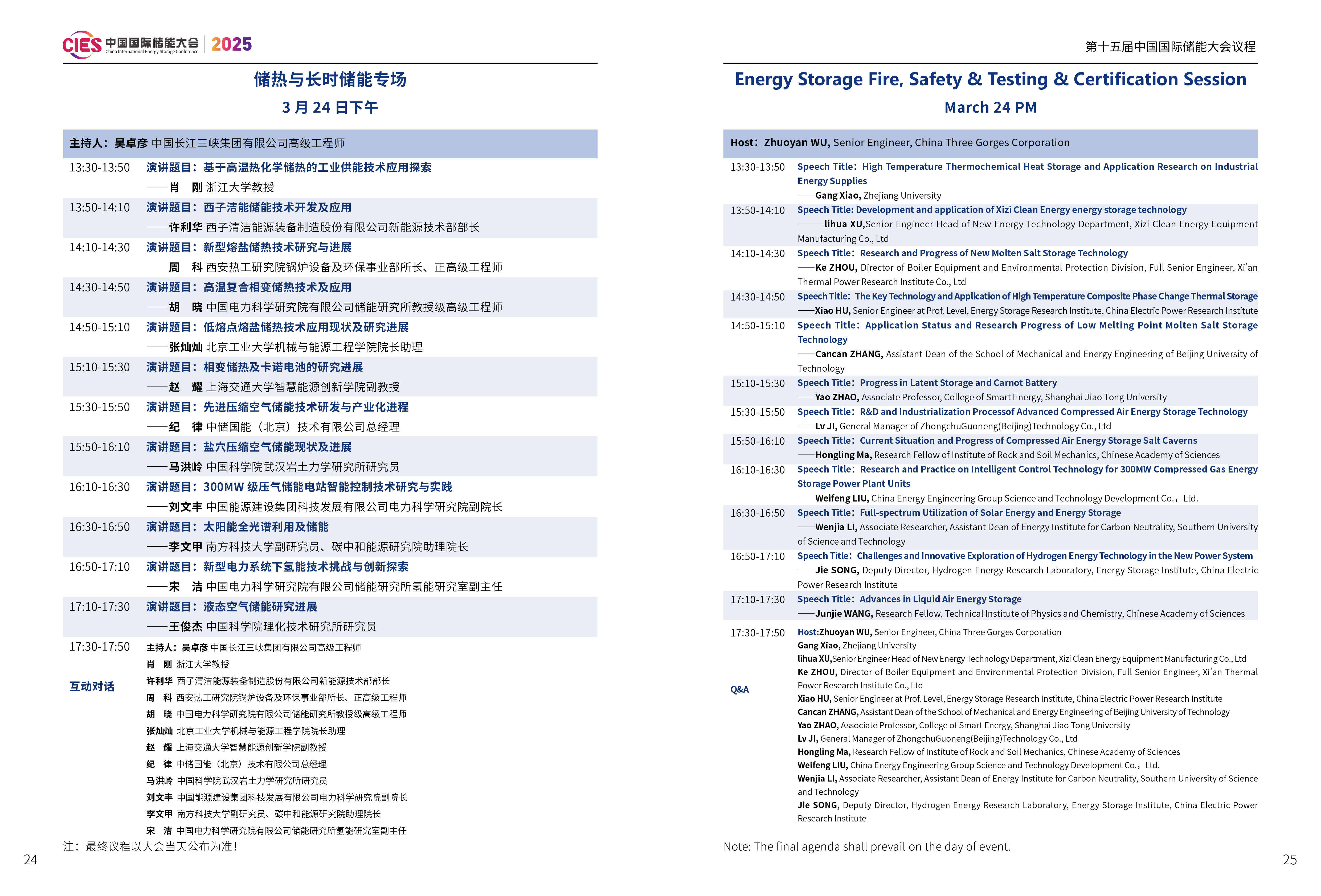 CIES2025儲能大會將設(shè)置:大會開幕式暨特邀院士專家報告、數(shù)智化配電網(wǎng)與新型儲能融合創(chuàng)新、新型電力系統(tǒng)與并網(wǎng)調(diào)度、新型儲能與新能源大基地協(xié)同發(fā)展、國際儲能、電力輔助服務(wù)、現(xiàn)貨交易及容量市場、工業(yè)綠色微電網(wǎng)、國家儲能標準宣貫、數(shù)智化新型儲能系統(tǒng)集成解決方案(上、下)、儲能消防、安全與檢測認證、新型儲能資本與投資、液流電池、儲熱與長時儲能、混合儲能、2025 新型儲能系列研究報告暨行業(yè)百強發(fā)布、全球化新型儲能供應(yīng)鏈機遇與挑戰(zhàn)、數(shù)智化工商業(yè)儲能解決方案與商業(yè)案例、虛擬電廠與車網(wǎng)互動、海外儲能渠道開發(fā)與商業(yè)機遇、構(gòu)網(wǎng)型儲能系統(tǒng)及項目建設(shè)、儲能專用電池與ESG、新品發(fā)布會等23個專場,以下為儲熱與長時儲能專場議程(最終議程以大會當天發(fā)布為準)。