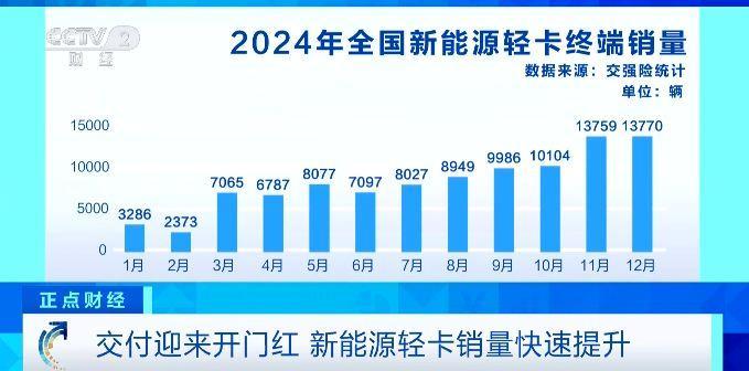 2025年1月,我國新能源輕卡市場實銷4637輛,同比增長41%,創(chuàng)下歷年來最佳首月表現(xiàn)。記者梳理發(fā)現(xiàn),2024年,我國新能源輕卡市場累計銷量近10萬輛,全年有7個月銷量超過8000輛,并且自10月份起,連續(xù)3個月銷量突破一萬輛。