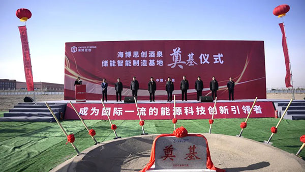 在奠基儀式上,酒泉經(jīng)開區(qū)(高新區(qū))黨工委副書記、管委會(huì)主任張宏軍表示,海博思創(chuàng)酒泉基地的建設(shè),為酒泉新能源及新能源裝備制造強(qiáng)龍頭、補(bǔ)鏈條、聚集群,培育千億級產(chǎn)業(yè)基地增添了新的動(dòng)能,也對提升酒泉新能源裝備制造產(chǎn)業(yè)能級,加快“打造全國重要的新能源及新能源裝備制造基地”具有重要意義。