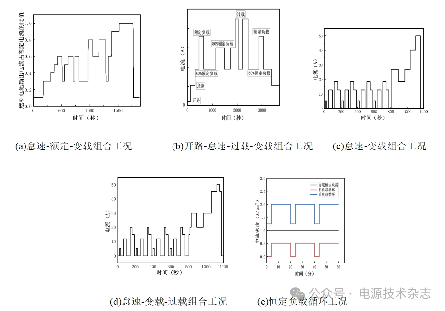 圖1 5種模擬車載循環(huán)的耐久試驗(yàn)工況