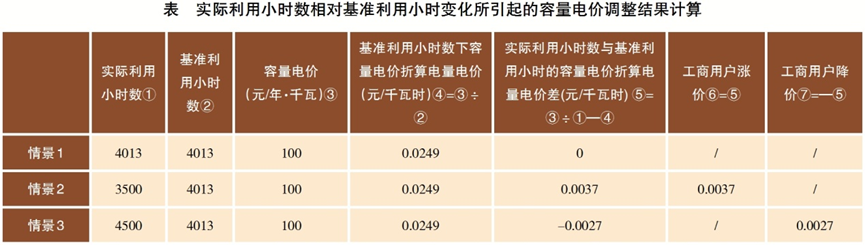 情境2:實(shí)際煤電利用小時(shí)數(shù)小于基準(zhǔn)利用小時(shí)。這是今后煤電利用小時(shí)變化的主要趨勢,也是1501號(hào)文瞄準(zhǔn)解決的針對性問題。此時(shí)煤電容量電價(jià)折算電量電價(jià)大于基準(zhǔn)煤電利用小時(shí)數(shù)下煤電容量電價(jià)的折算電量電價(jià),與基準(zhǔn)利用小時(shí)數(shù)相對應(yīng)的容量電價(jià)折算電量電價(jià)在“基準(zhǔn)價(jià)+上下浮動(dòng)”形成的市場電量電價(jià)中扣除,但大于部分應(yīng)該以漲價(jià)的形式明確由工商業(yè)用戶分?jǐn)偅荒軐?shí)際利用小時(shí)數(shù)下的煤電容量電價(jià)直接在“基準(zhǔn)價(jià)+上下浮動(dòng)”形成的電量電價(jià)中扣除。