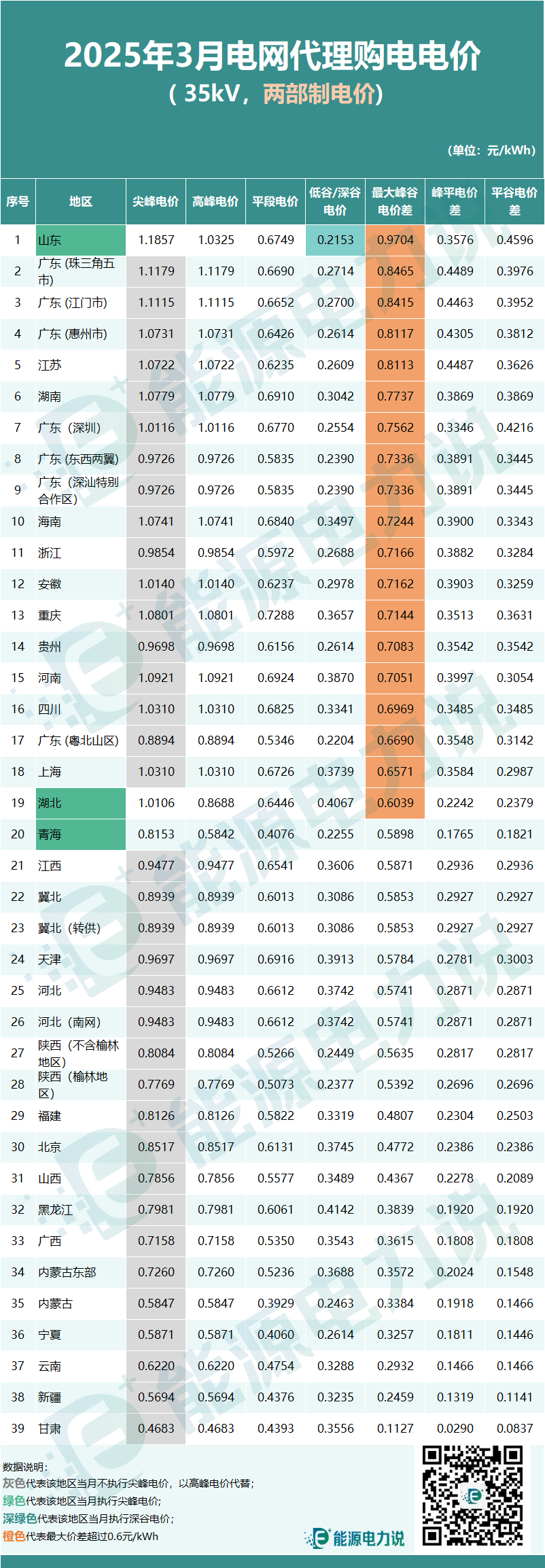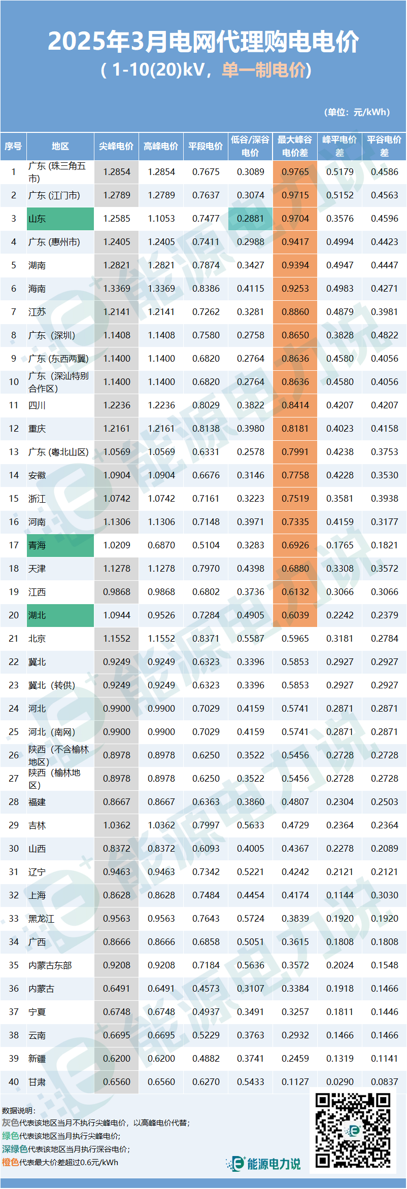 中國儲能網訊:目前,各地區(qū)2025年3月電網代購電價已公布,能源電力說對各地一般工商業(yè)10(20)kV單一制電價、10(20)kV兩部制電價、大工業(yè)35kV兩部制電價進行了匯總。