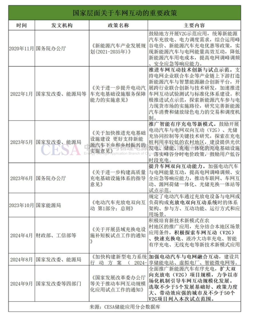 政策層面,2020年至2024年,國家發(fā)展改革委等部門發(fā)布了系列政策鼓勵車網(wǎng)互動發(fā)展。