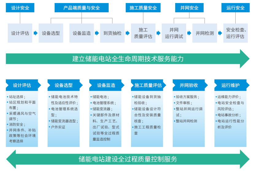 CQC具備儲能電站全生命周期技術(shù)服務(wù)能力,重點關(guān)注電站各環(huán)節(jié)的質(zhì)量安全和性能檢測,致力于構(gòu)建儲能產(chǎn)品生產(chǎn)和電站建設(shè)全過程質(zhì)量控制和風(fēng)險防控體系,助力儲能電站降本、提質(zhì)、增效、降碳。