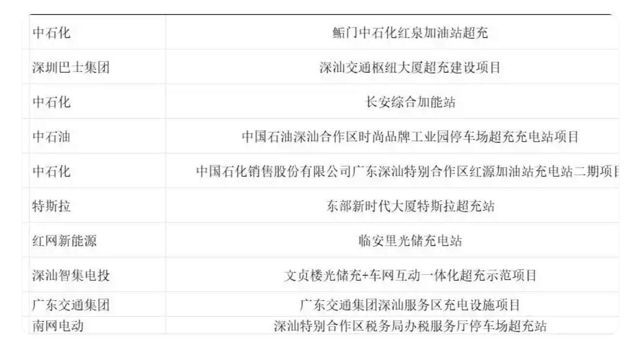 除了普通充電站以外,深汕特別合作區(qū)已新建或改造以下超充場站: