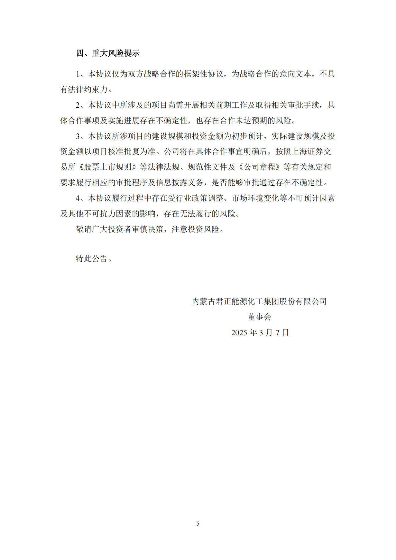 君正集團表示,本協(xié)議的簽訂符合國家相關(guān)產(chǎn)業(yè)政策和公司長遠發(fā)展規(guī)劃,如項目順利實施,將進一步鞏固和擴大公司現(xiàn)有產(chǎn)業(yè)鏈條的綜合競爭優(yōu)勢,符合公司和全體股東的利益。