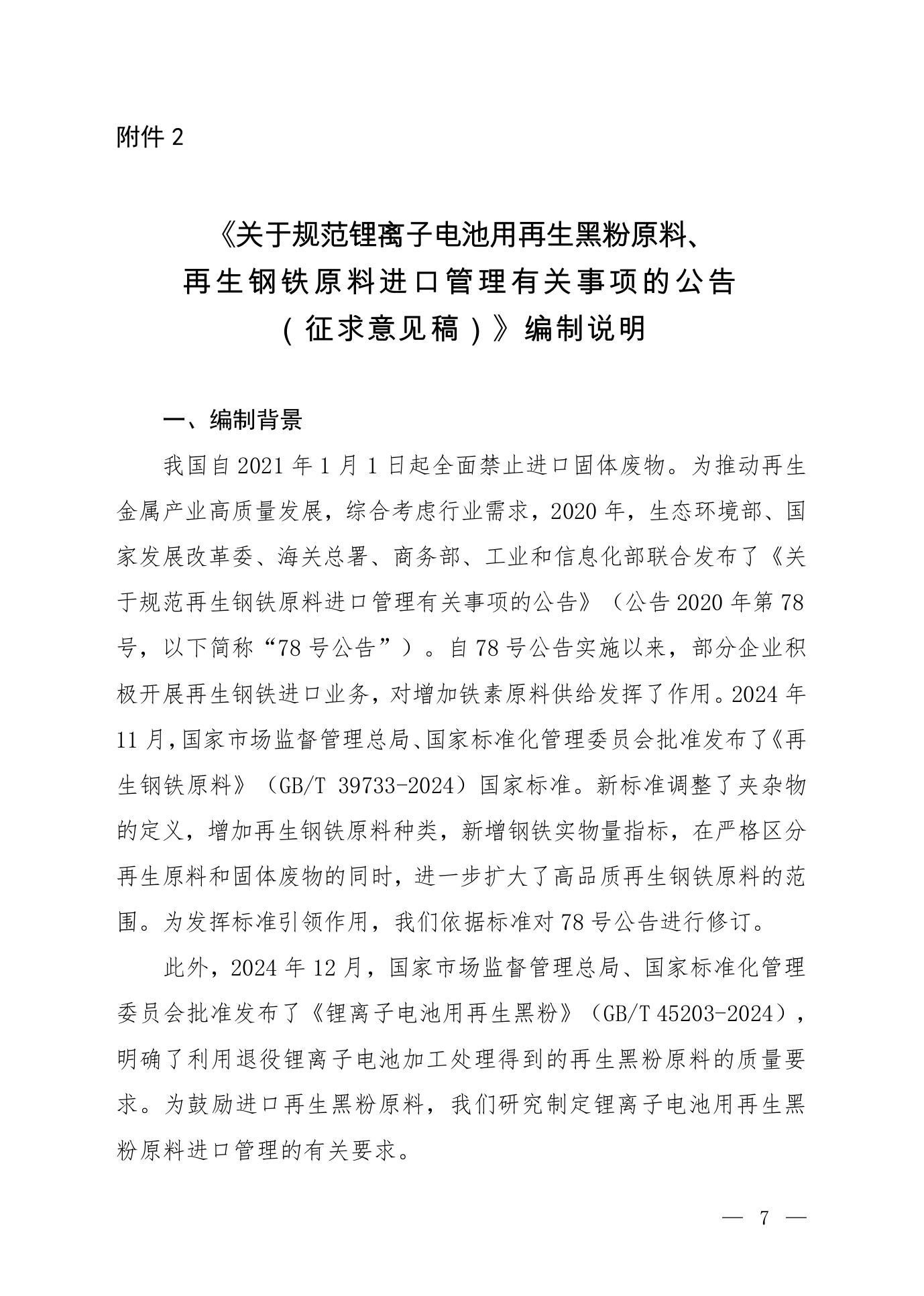 2.《關(guān)于規(guī)范鋰離子電池用再生黑粉原料、再生鋼鐵原料進(jìn)口管理有關(guān)事項(xiàng)的公告(征求意見稿)》編制說(shuō)明