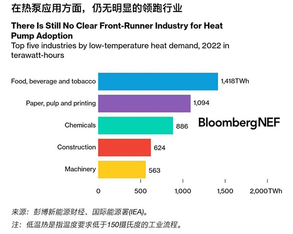 工業(yè)熱泵適用于200攝氏度(390華氏度)以下的低溫工業(yè)用熱流程,如食品飲料、紙漿和造紙行業(yè)。如今,盡管一些行業(yè)協(xié)會正在探索工業(yè)熱泵的潛力,但目前尚無一個行業(yè)在采用方面處于領(lǐng)先。