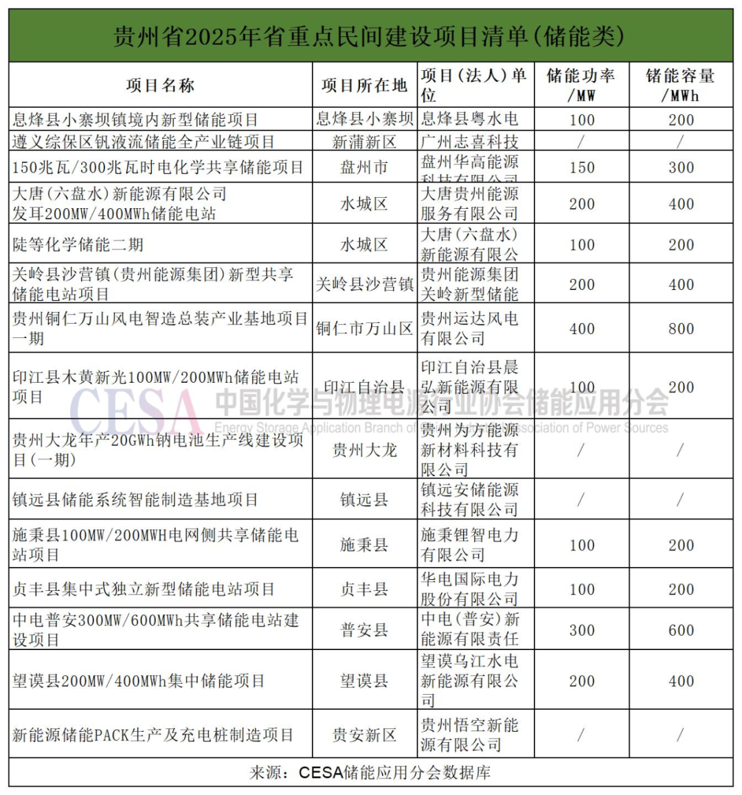 中國(guó)儲(chǔ)能網(wǎng)訊:近日,貴州省發(fā)展改革委發(fā)布2025年重點(diǎn)民間投資項(xiàng)目清單。其中包括印江縣木黃新光100MW/200MWh儲(chǔ)能電站項(xiàng)目、中電普安300MW/600MWh共享儲(chǔ)能電站建設(shè)項(xiàng)目、望謨縣200MW/400MWh集中儲(chǔ)能項(xiàng)目等15個(gè)儲(chǔ)能相關(guān)項(xiàng)目,共計(jì)超1.95GW/3.9GWh。其中電站類項(xiàng)目11個(gè),產(chǎn)能類項(xiàng)目4個(gè)。