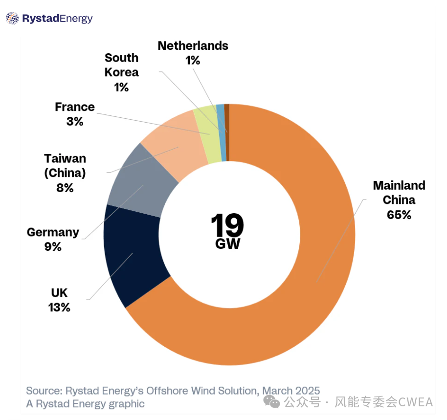 2025年預(yù)計全球海上風電裝機容量19GW(來源:Rystad Energy)