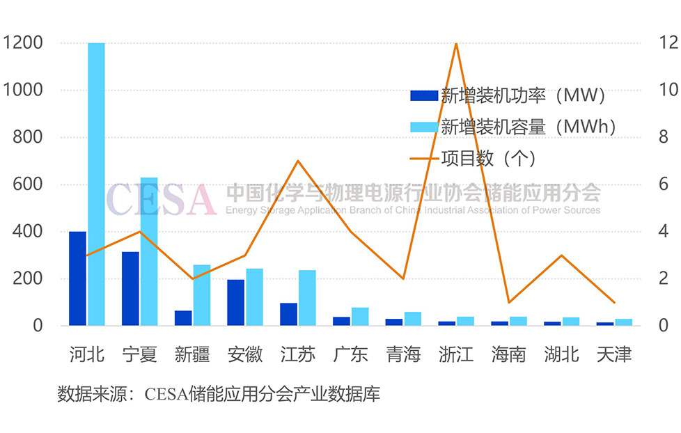 寧夏新增4個并網(wǎng)項目,裝機(jī)規(guī)模315.04MW/630.1MWh,容量占比21.84%,位居第二。新疆新增裝機(jī)65MW/260MWh,占比8.43%,排在第三。安徽、江蘇新增裝機(jī)規(guī)模均在200MWh以上。此外,廣東、青海、浙江、海南、湖北等地新增裝機(jī)規(guī)模在30MWh—80MWh不等。